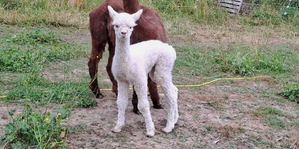 Besonders rührend: Ab und zu darf Loomin bei unserer Stute Artemis trinken, die ihr eigenes Fohlen bei der Geburt verloren hat. Diese stille Verbindung zwischen den beiden berührt uns sehr und zeigt einmal mehr, wie feinfühlig und sozial Alpakas sein können.